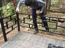 Снимаем с памятника защитные наклейки, красим ограждение, наполняем цветник корой.