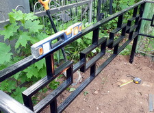 Следующим этапом стала установка ограждения. Уже готовую оградку мы привезли на участок, там собрали и выставили по периметру могилы не укрепляя. Параллельно с монтажом ограждения мы вкопали трубы на месте будущих цветников.