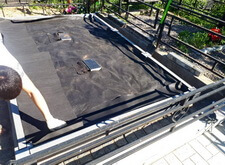 Укрываем внутреннюю зону участка геотекстилем и приносим три массивные прямоугольные плиты, которые в дальнейшем послужат наземным покрытием могилы.