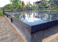 По периметру участка монтируем гранитный цоколь, состоящие из балок секции которого будут разделены невысокими столбиками.