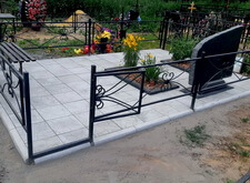 Изначальное состояние места захоронения – отсыпанный песком участок. Клиентку не устраивало подобное наземное покрытие: сложное в уборке и не очень привлекательное внешне. Заказчица пожелала заложить могилу бетонной плиткой, сохранив два цветника.