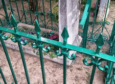 Мы покрасили ограду и крест в зеленый цвет. Именно такой цвет предпочел заказчик. Мы выбрали краску марки Hammerite, как наиболее качественную на сегодняшний день. Мы дали гарантию 7 лет на эту работу, гарантию на то, что наша покраска продержится и не потрескается, и не зашелушится.