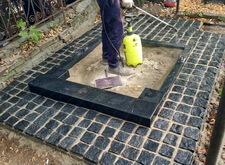 Подготавливаем основание для надгробья, приносим памятник и монтируем его.