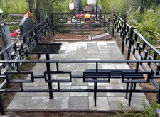 Первое, что мы сделали на могиле – уборку. Тщательно очистив место захоронения от сорной травы и прочего мусора, мы взялись за монтаж ограждения. Ножки оградки вбили в специальные ямы, а по нижней её части проварили металлический борт, служащий одновременно и ограничителем для плитки, и дополнительным каркасом, придающим жёсткость самой конструкции.