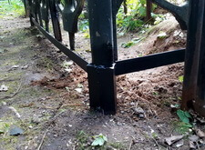В данном заказе мы столкнулись со следующей проблемой: из металлического ограждения, опоясывавшего периметр участка, была украдена секция. Нижняя же часть ограждения практически полностью прогнила, а потому и остальные элементы узора грозили в скором времени банально выпасть.