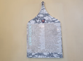 В день монтажа мы доставили готовые таблички в храм, предварительно сняв со стены висевшую там мраморную доску.